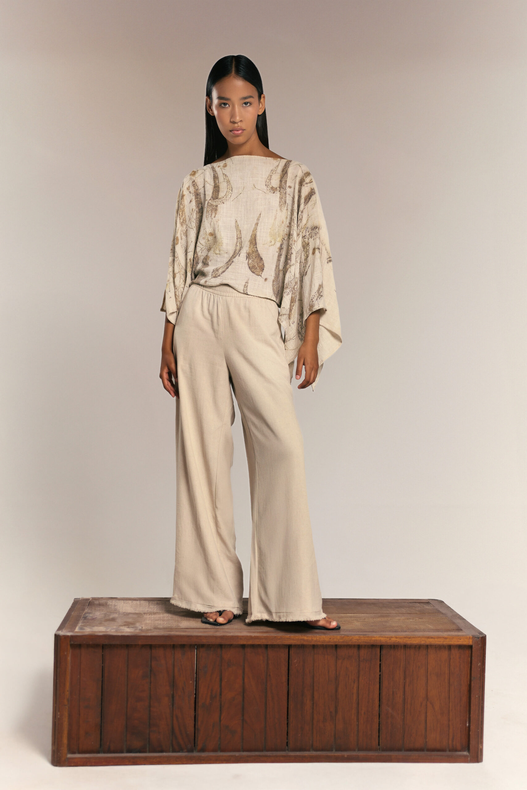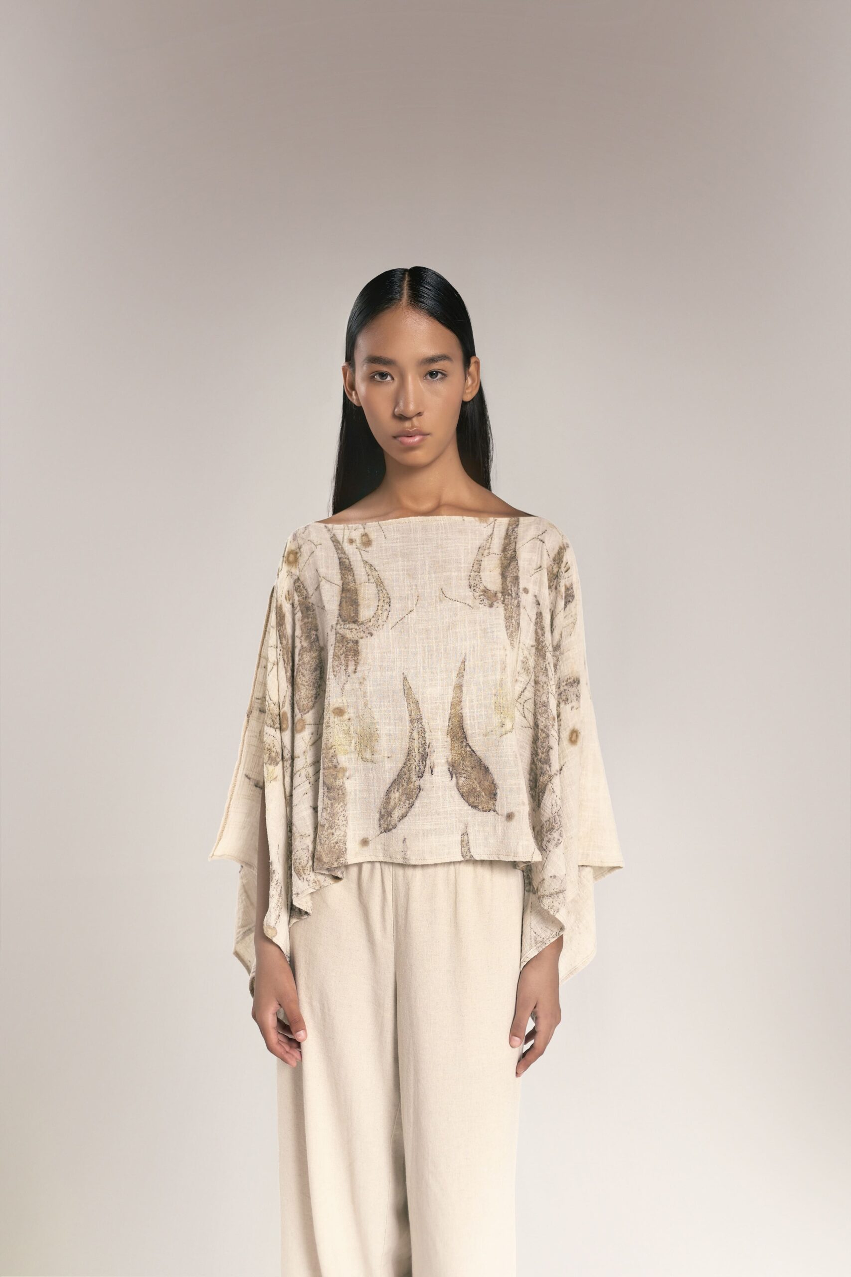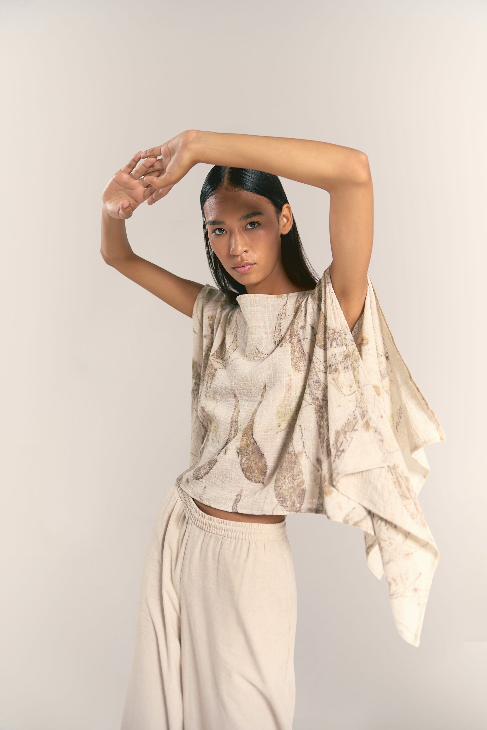 - Pigmentos Orgánicos Oscuros: Estampados realizados con procesos de bajo impacto ambiental que logran negros, grises y azules profundos con una esencia mística.