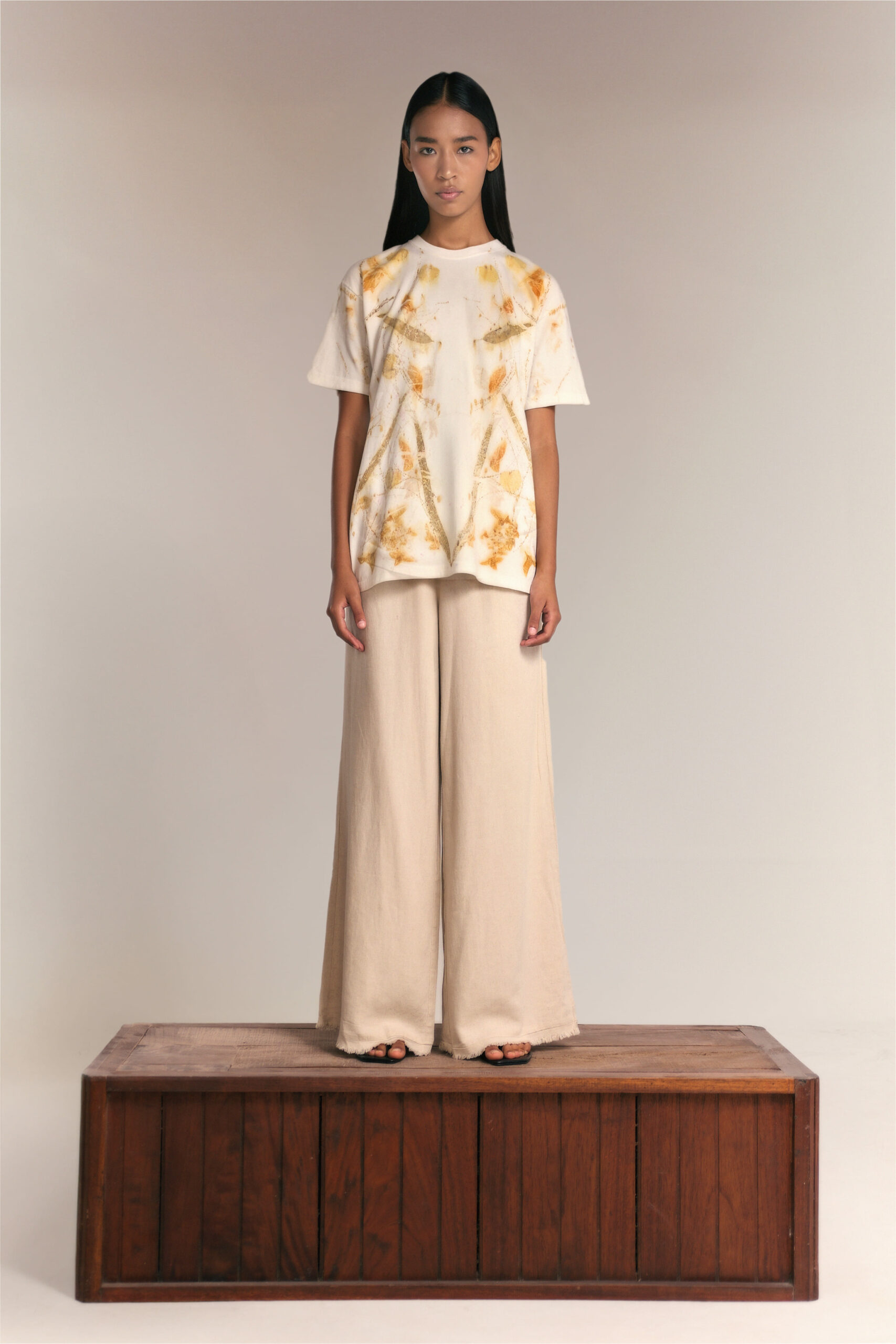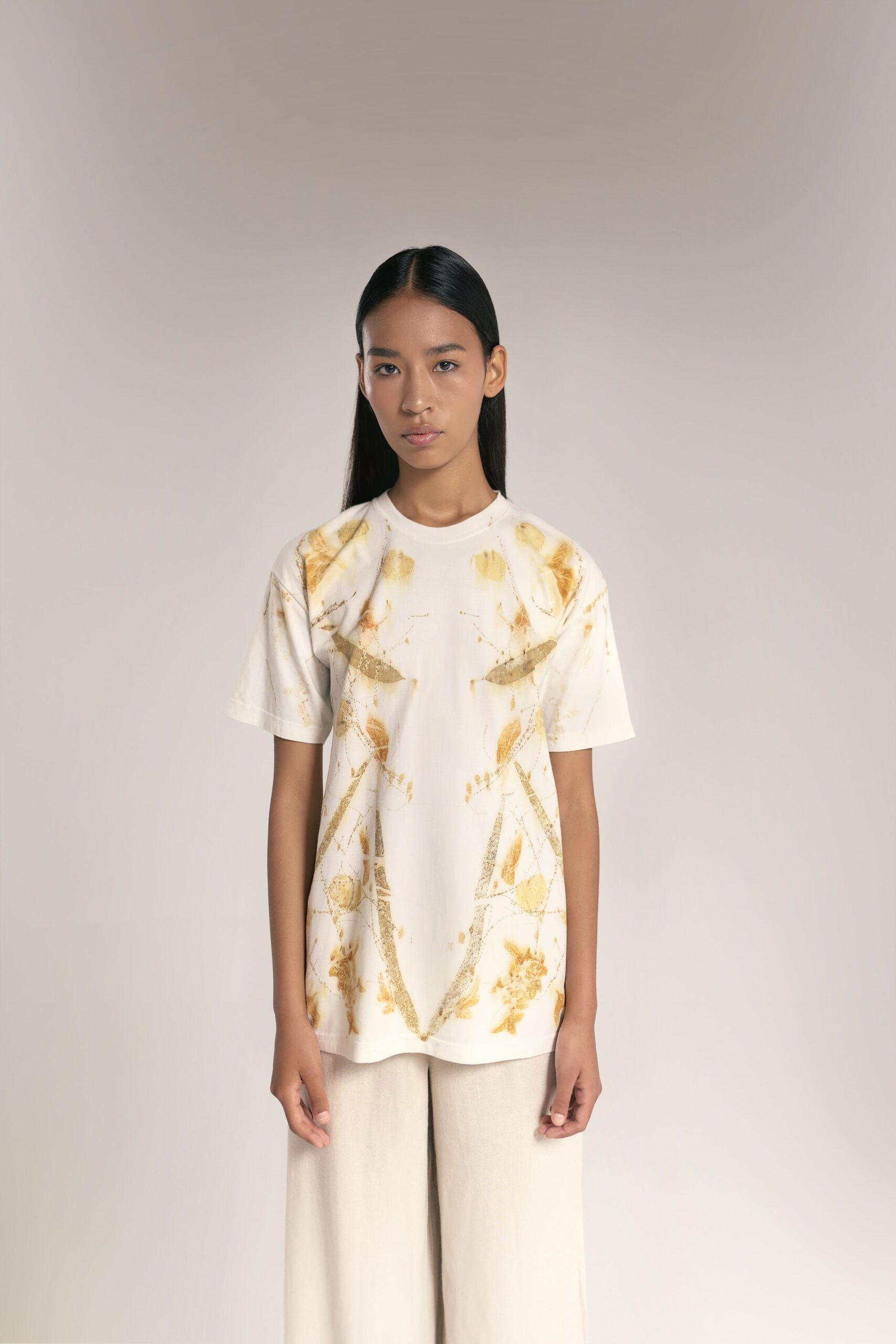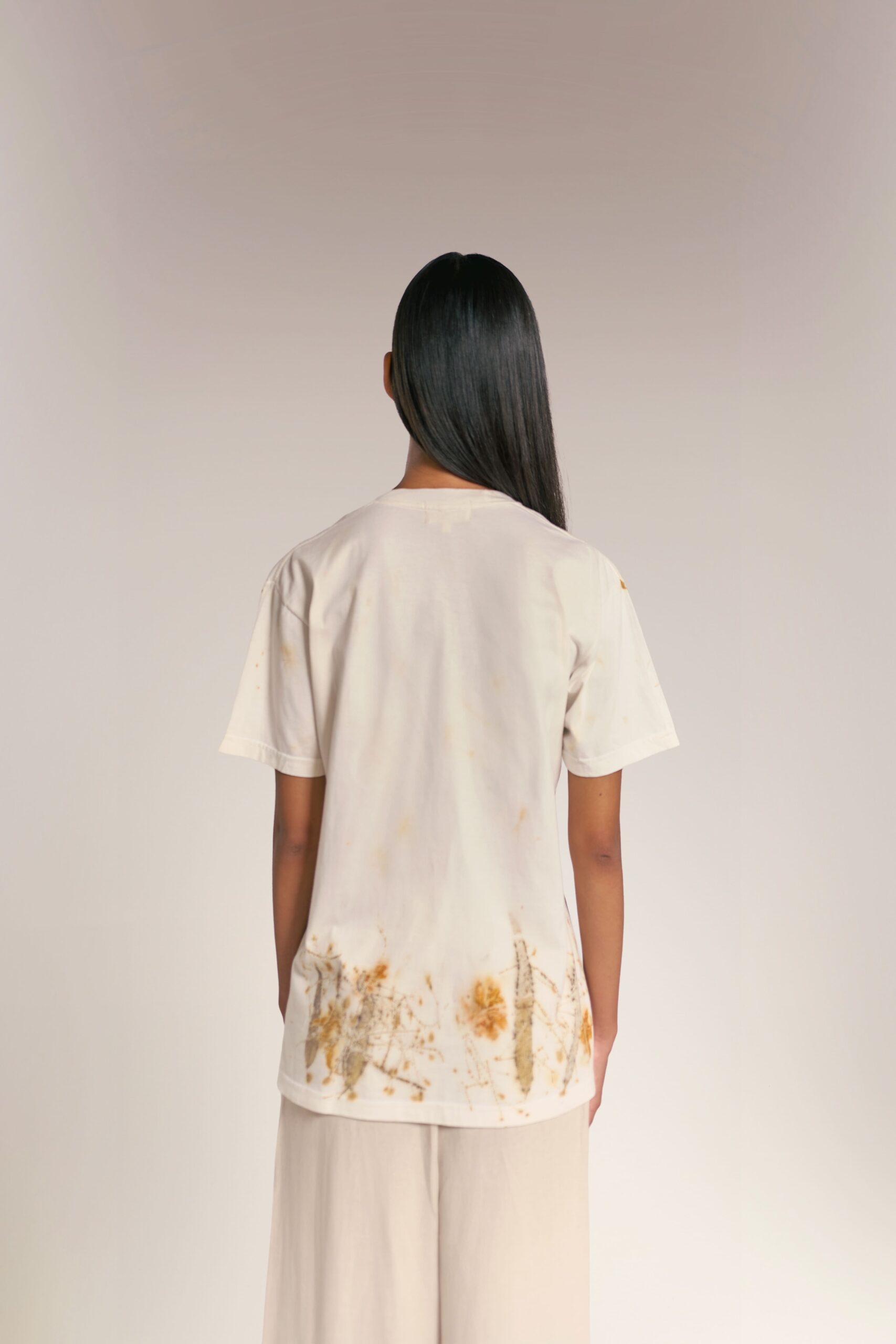 Este polo ha sido tratado con la mística Piedra de Alumbre, logrando tonalidades orgánicas y vibrantes que evolucionan con el tiempo y que ningún tinte sintético puede igualar. Gracias a nuestra técnica de estampado botánico, cada prenda es irrepetible: las hojas y flores dejan su huella única sobre el algodón, creando una pieza de arte que solo tú posees.